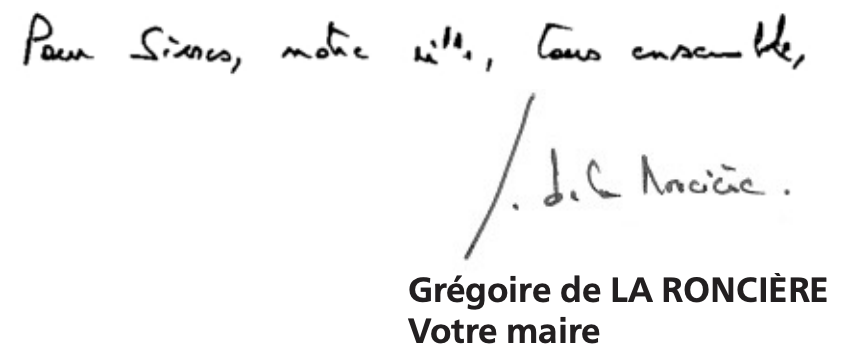C’est pour moi un honneur de vous servir chaque jour à temps plein, au plus près du terrain, de manière accessible et humaine, en vue du bien commun de notre ville.